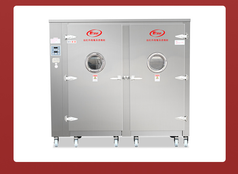 厂家新款火太阳远红外线不锈钢餐具双门消毒柜适用学校单位食堂