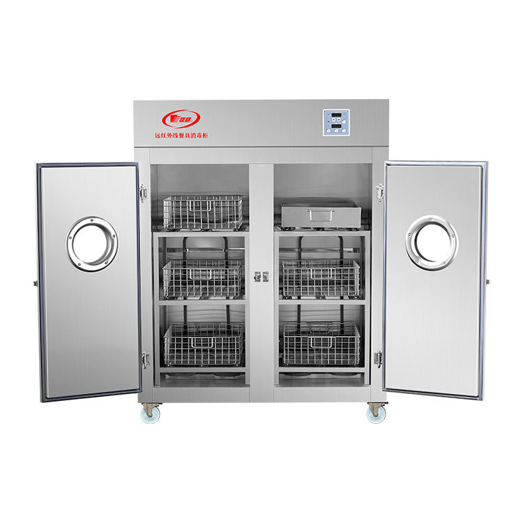 厂家新款火太阳远红外线不锈钢餐具双门消毒柜适用学校单位食堂