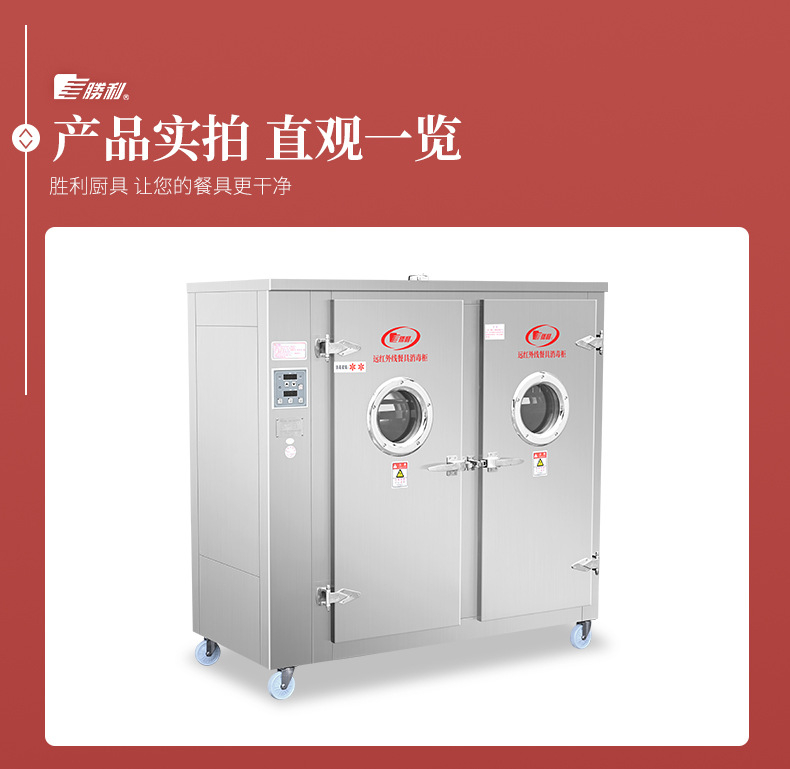 厂家新款火太阳远红外线不锈钢餐具双门消毒柜适用学校单位食堂