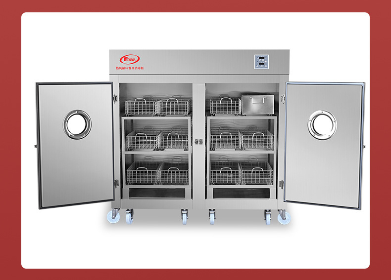 厂家新款火太阳远红外线不锈钢餐具双门消毒柜适用学校单位食堂