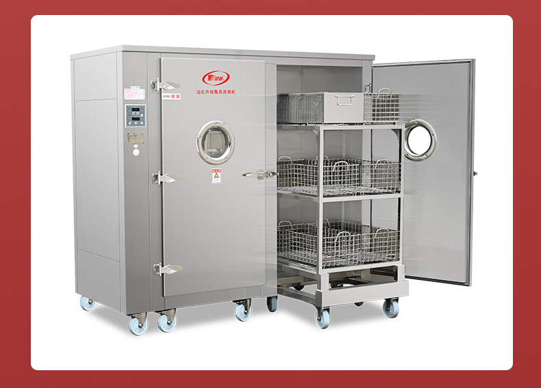 厂家新款火太阳远红外线不锈钢餐具双门消毒柜适用学校单位食堂