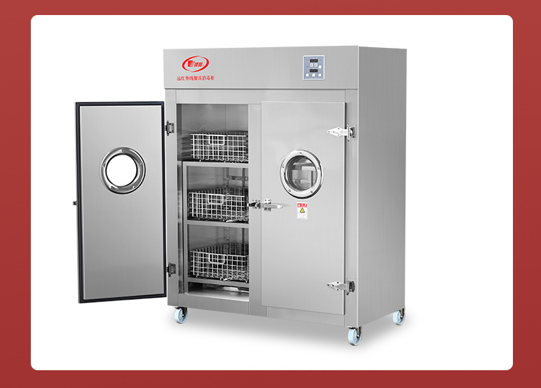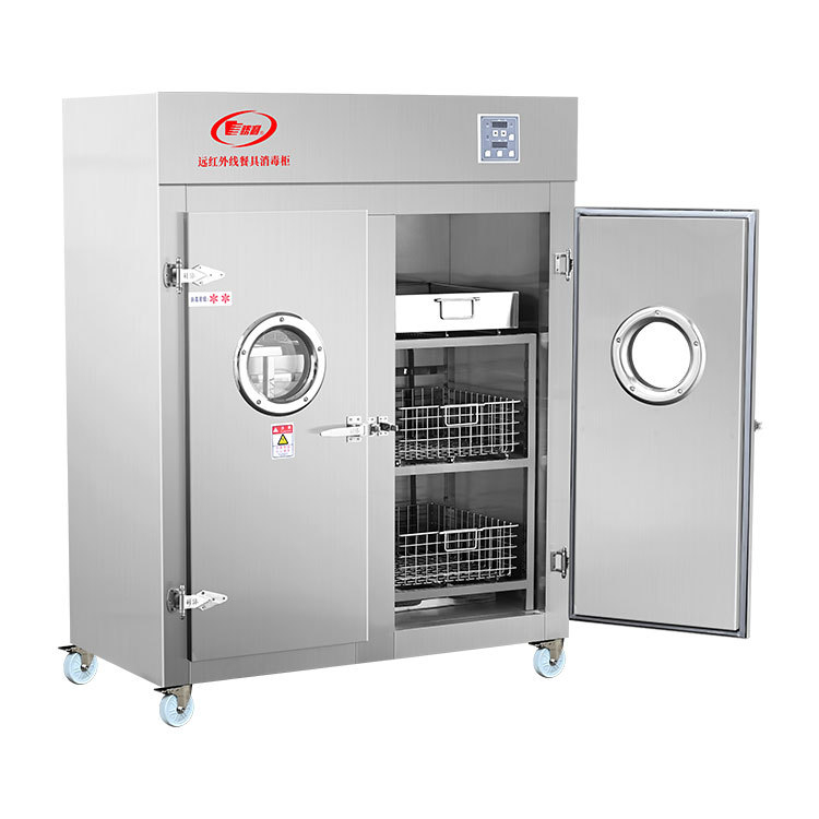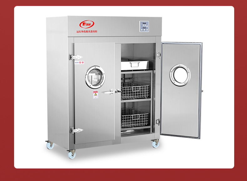 厂家新款火太阳远红外线不锈钢餐具双门消毒柜适用学校单位食堂