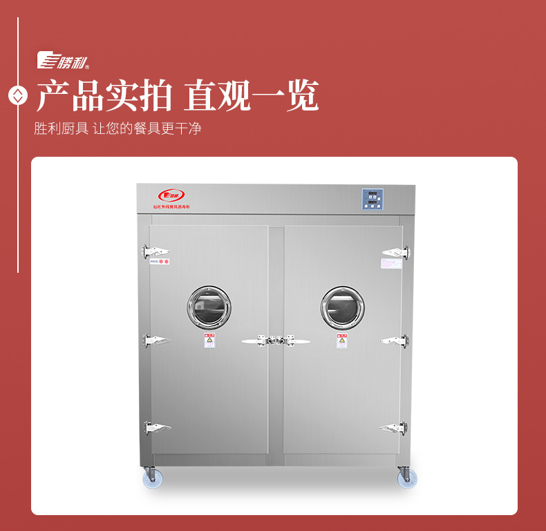 厂家新款火太阳远红外线不锈钢餐具双门消毒柜适用学校单位食堂