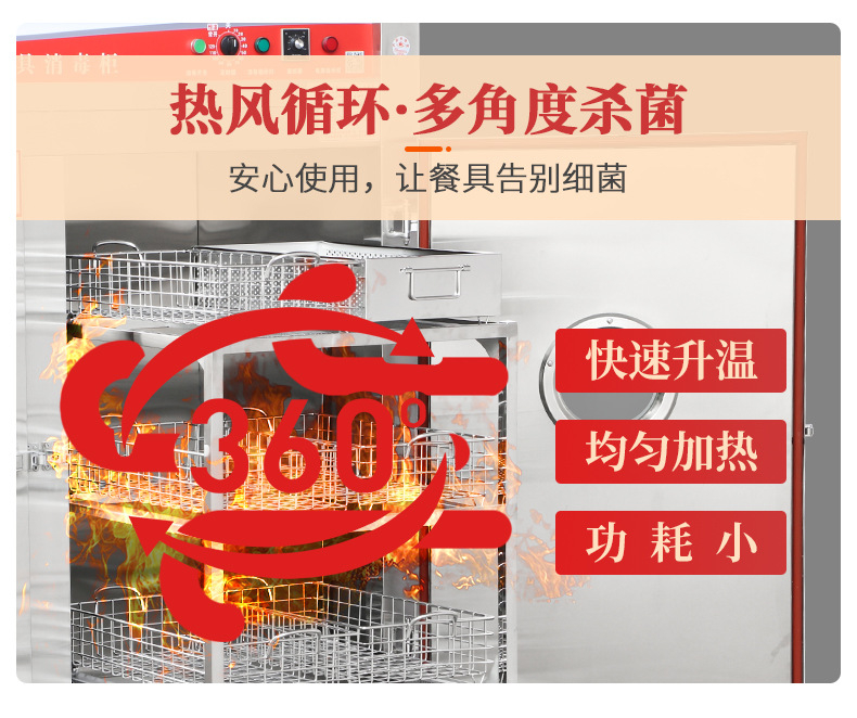 厂家新款火太阳远红外线不锈钢餐具双门消毒柜适用学校单位食堂