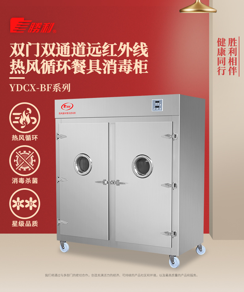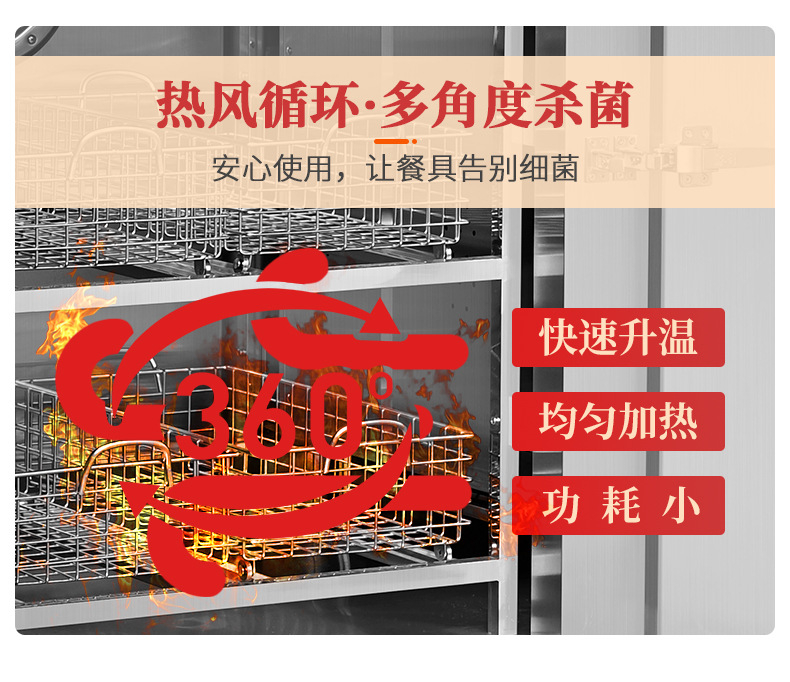 厂家新款火太阳远红外线不锈钢餐具双门消毒柜适用学校单位食堂